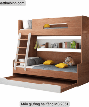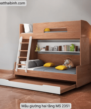 Mẫu giường hai tầng đã trở thành một lựa chọn phổ biến trong thiết kế nội thất, đặc biệt là cho không gian sống hiện đại. Thiết kế thông minh của giường hai tầng không chỉ tối ưu hóa diện tích mà còn mang lại cảm giác thoải mái cho người sử dụng. Sản phẩm này thường được làm từ vật liệu gỗ công nghiệp MDF cao cấp, một loại vật liệu được ưa chuộng vì tính bền bỉ và khả năng chống ẩm tốt. Gỗ MDF không chỉ giúp duy trì độ bền mà còn dễ dàng bảo quản, làm giảm khâu bảo trì cho người sử dụng.